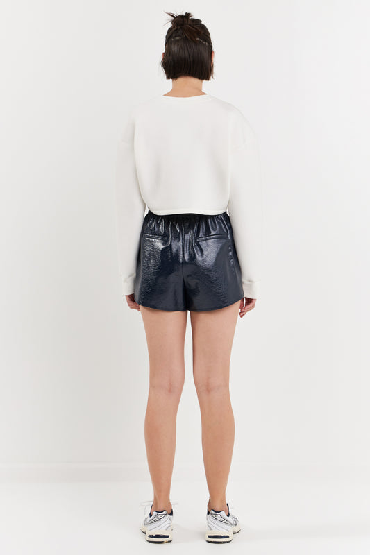 "Flynn" High-Waisted Faux Leather Shorts - Navy