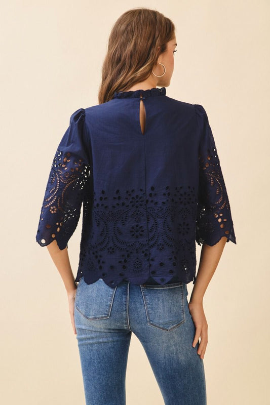 "Glendale" Eyelet Top - Navy